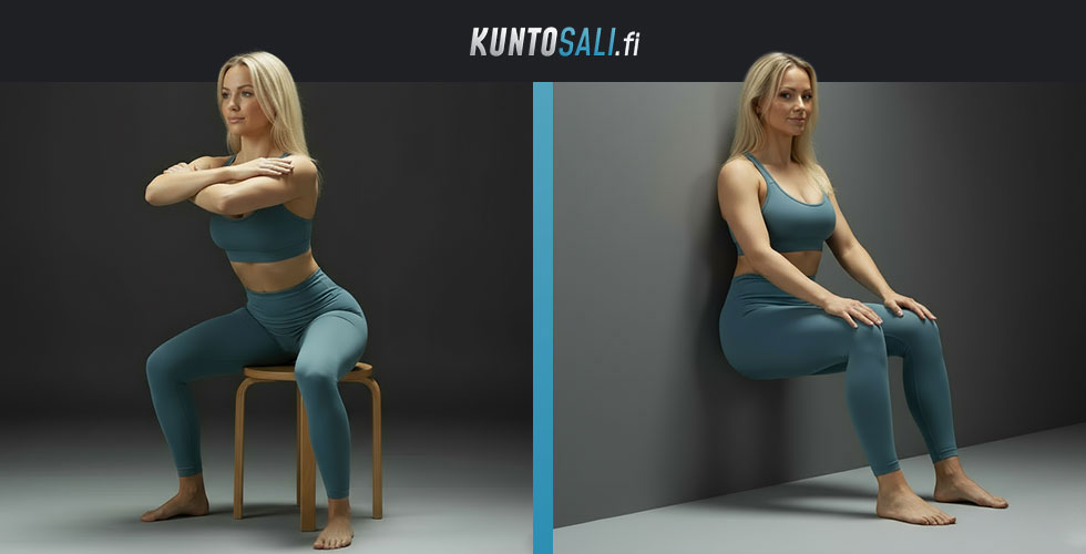 • Pysy asennossa tietty aika (esim. 30-60 sekuntia). Tämä vahvistaa reisiä ilman dynaamista liikettä.