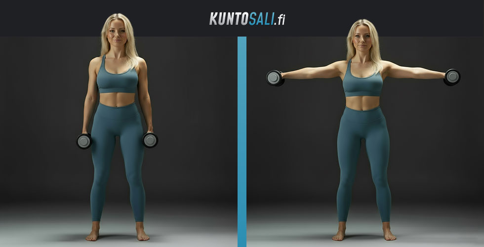 - 4. Nojaava vipunosto (Leaning Lateral Raise): Ota toisella kädellä tukea esim. tolpasta tai räkistä ja nojaa hieman poispäin. Tämä muuttaa vastuskäyrää ja tekee liikkeen alaosasta raskaamman.